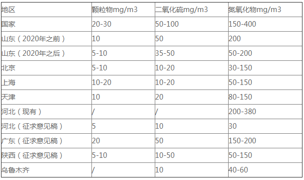 我國(guó)已出臺(tái)的部分地區(qū)燃?xì)忮仩t排放標(biāo)準(zhǔn)匯總
